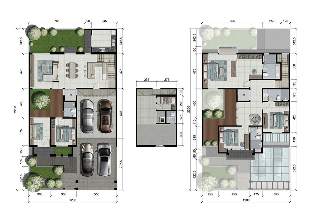 Kesan luas dan prestisius terlihat pada rumah ini. Dengan Garasi dan Carport yang cukup luas sehingga mampu menampung empat mobil sekaligus, ditambah dengan keistimewaan Private Elevator / Lift (optional) yang hanya dimiliki oleh tipe Aquamarine.