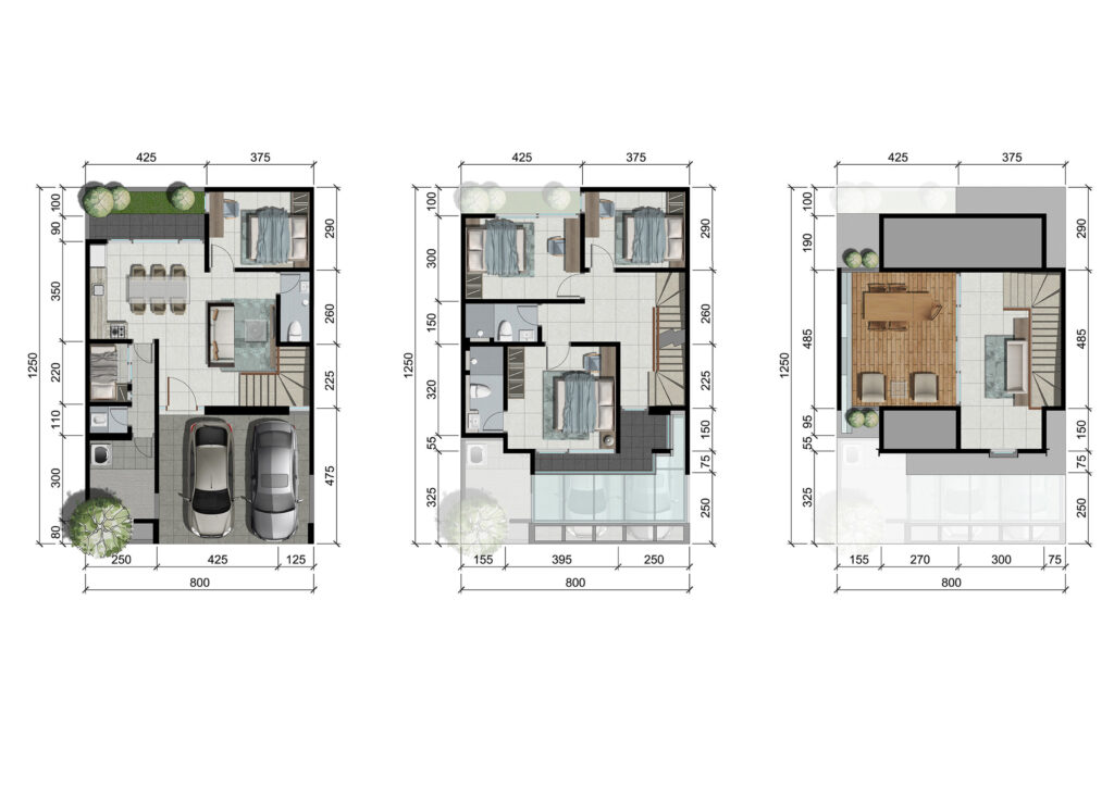 Tipe Tanzanite Deluxe A dibangun dengan 3 lantai dengan desain Modern Contemporary lengkap dengan Balcony Double Access & Attic dimana penghuni bisa meluangkan healing & family time di lantai 3.